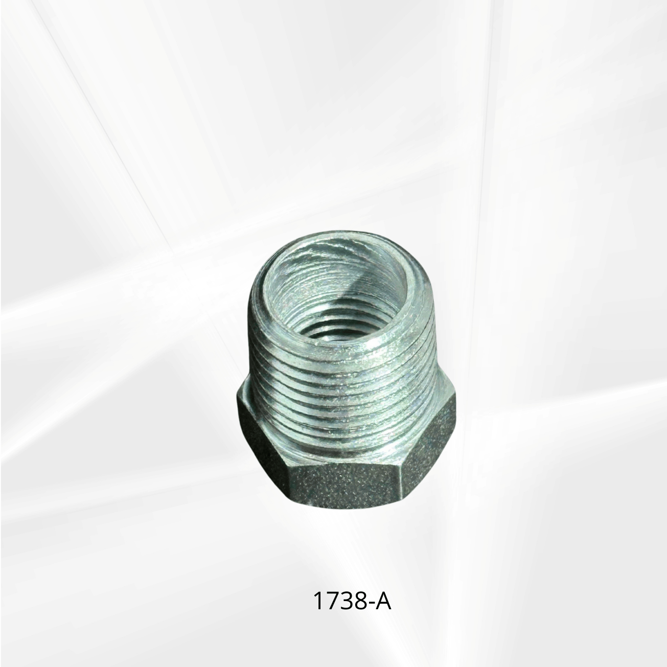 Essa bucha reduz uma conexão com rosca 3/8” NPT fêmea para permitir o uso de componentes com rosca 1/4” NPT macho, como: