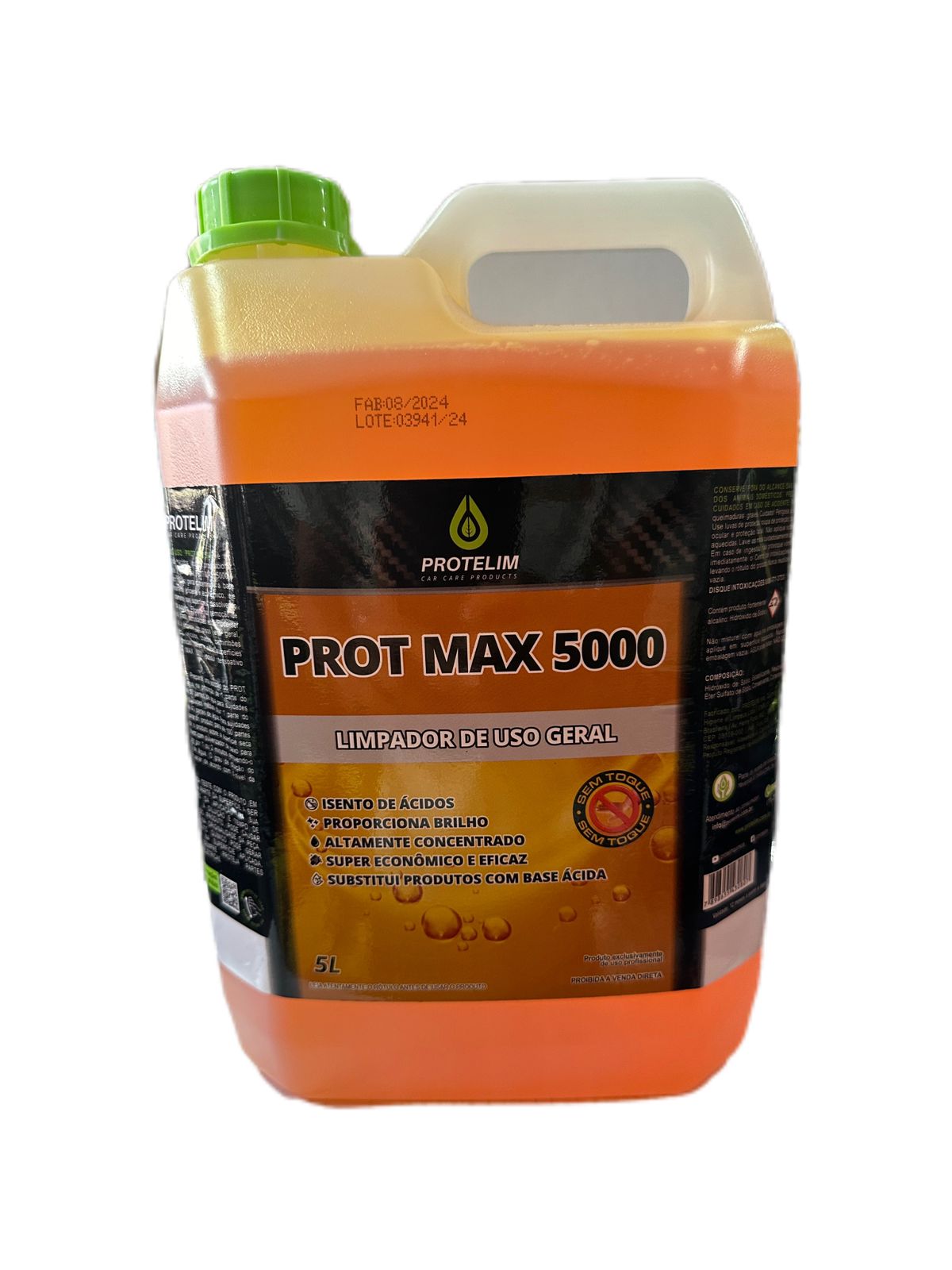 O PROT MAX 5000 é um produto isento de ácidos, que proporciona brilho à superfície a ser limpa. PROT MAX 5000 é um ultra limpador de uso geral concentrado, à base de água, extremamente eficiente e econômico. PROT MAX 5000 penetra profundamente nas superfícies, dissolvendo e extraindo toda a sujeira. Eficiente na remoção de gorduras, óleos, graxas, incrustações etc.